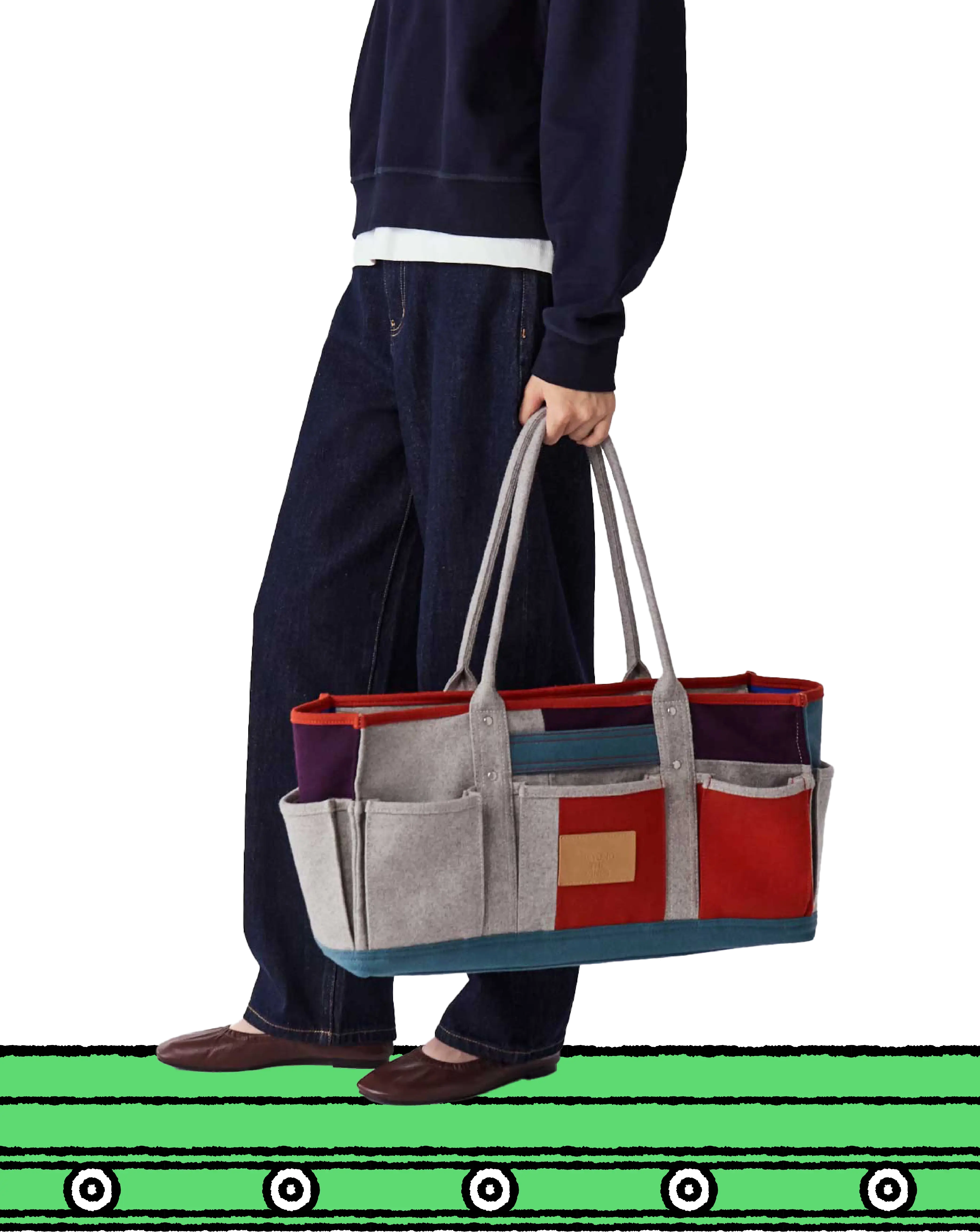 The Felt Carryall 2.5 fits a 13" laptop, water bottle, umbrella, and your daily essentials.