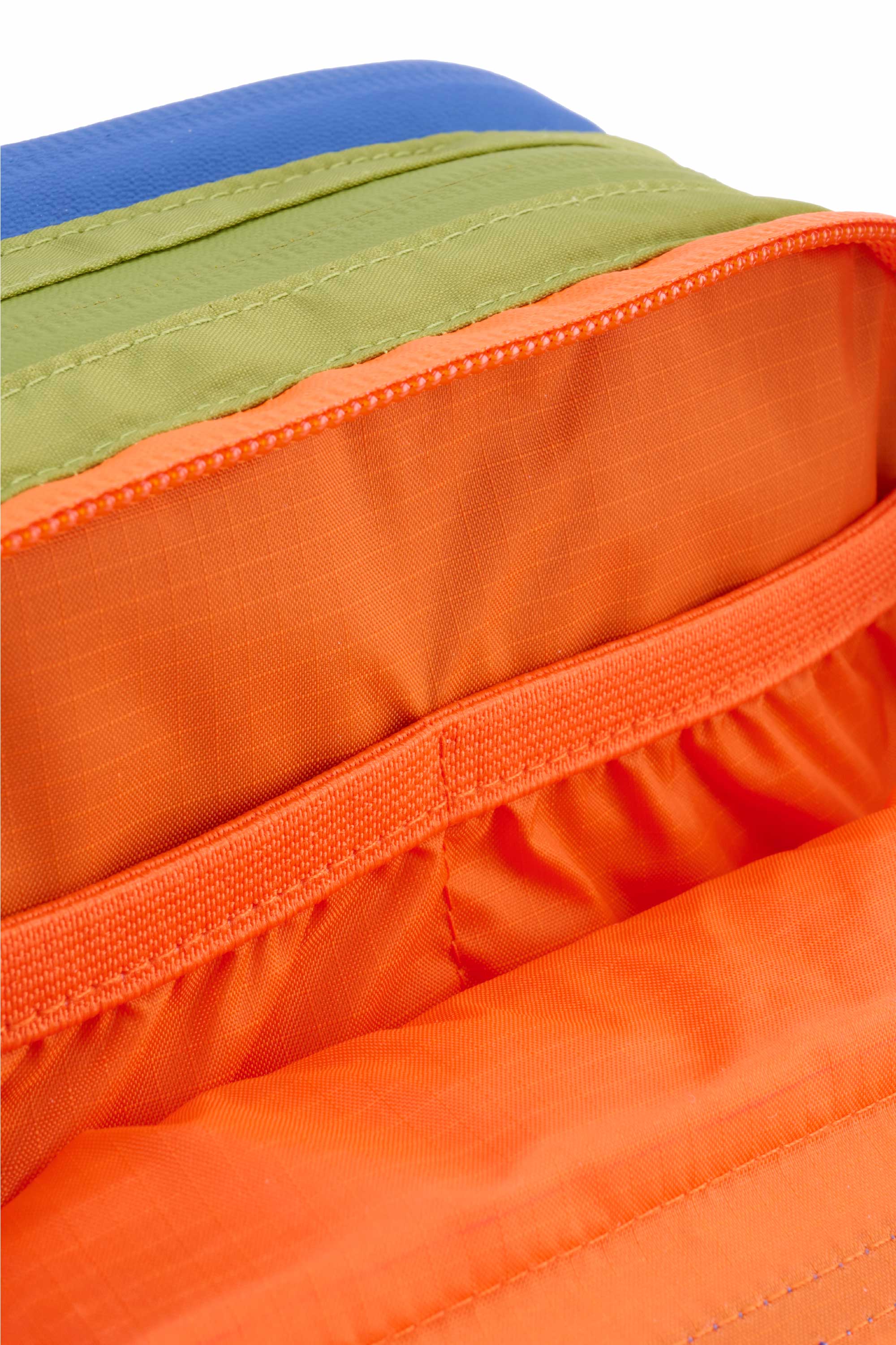 Made with 100% recycled nylon, this mini version of the ParaPouch is designed with 3 roomy zipper compartments and inner pockets to further organise your smaller items. Lightweight and water resistant, this pouch features waterproof zippers and a webbing handle. It is finished with an outer mesh zipper pocket on the back and a front rubber brand label.