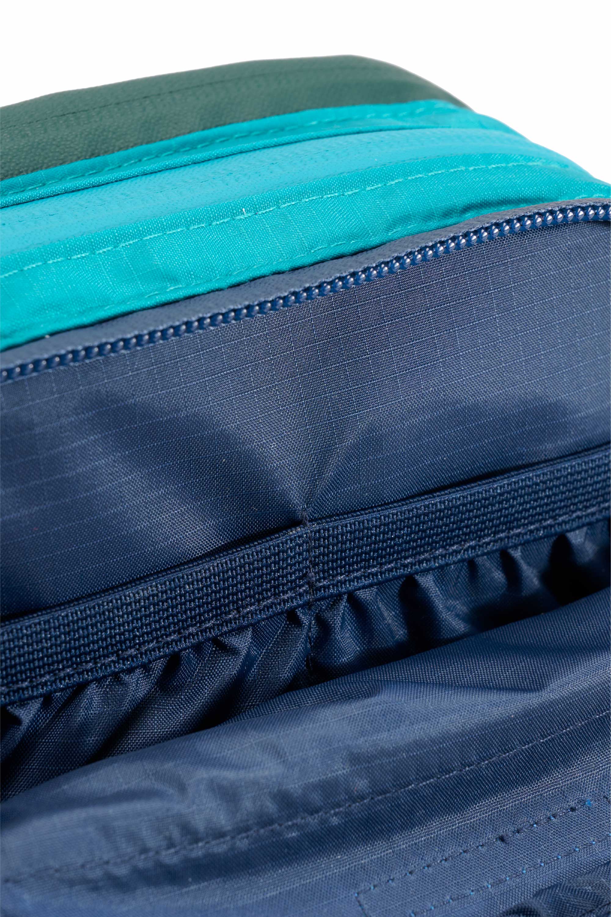 Made with 100% recycled nylon, this mini version of the ParaPouch is designed with 3 roomy zipper compartments and inner pockets to further organise your smaller items. Lightweight and water resistant, this pouch features waterproof zippers and a webbing handle. It is finished with an outer mesh zipper pocket on the back and a front rubber brand label.