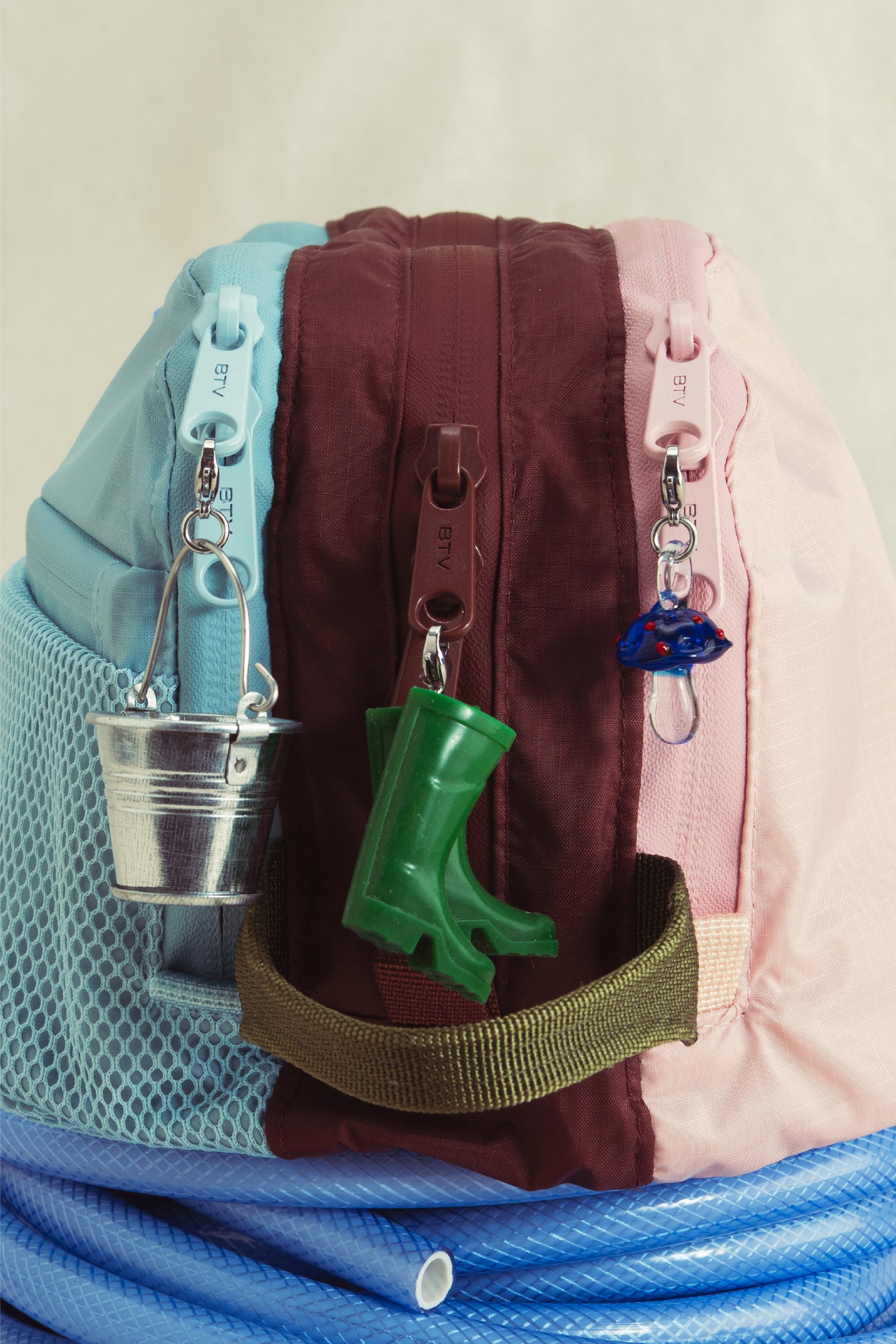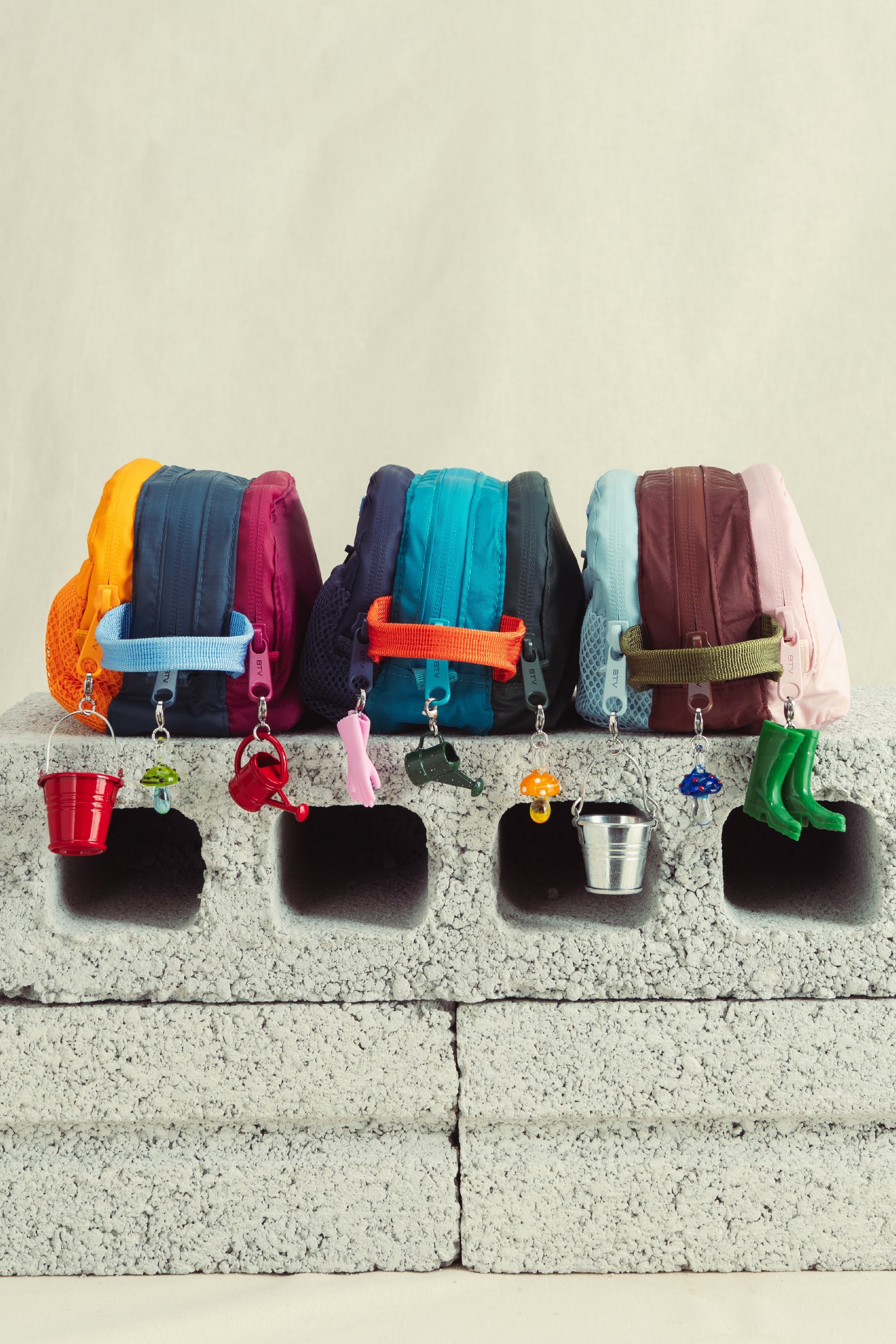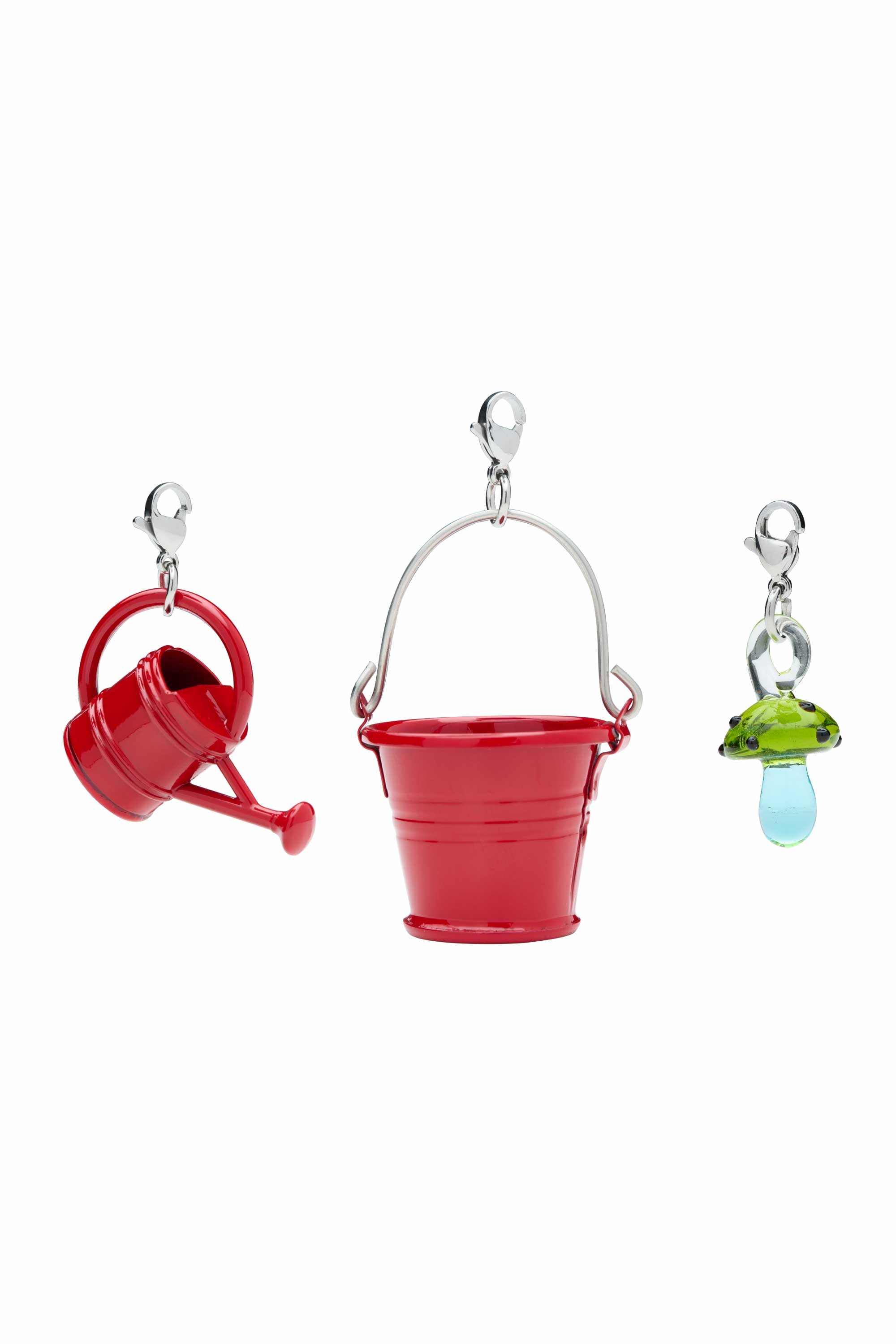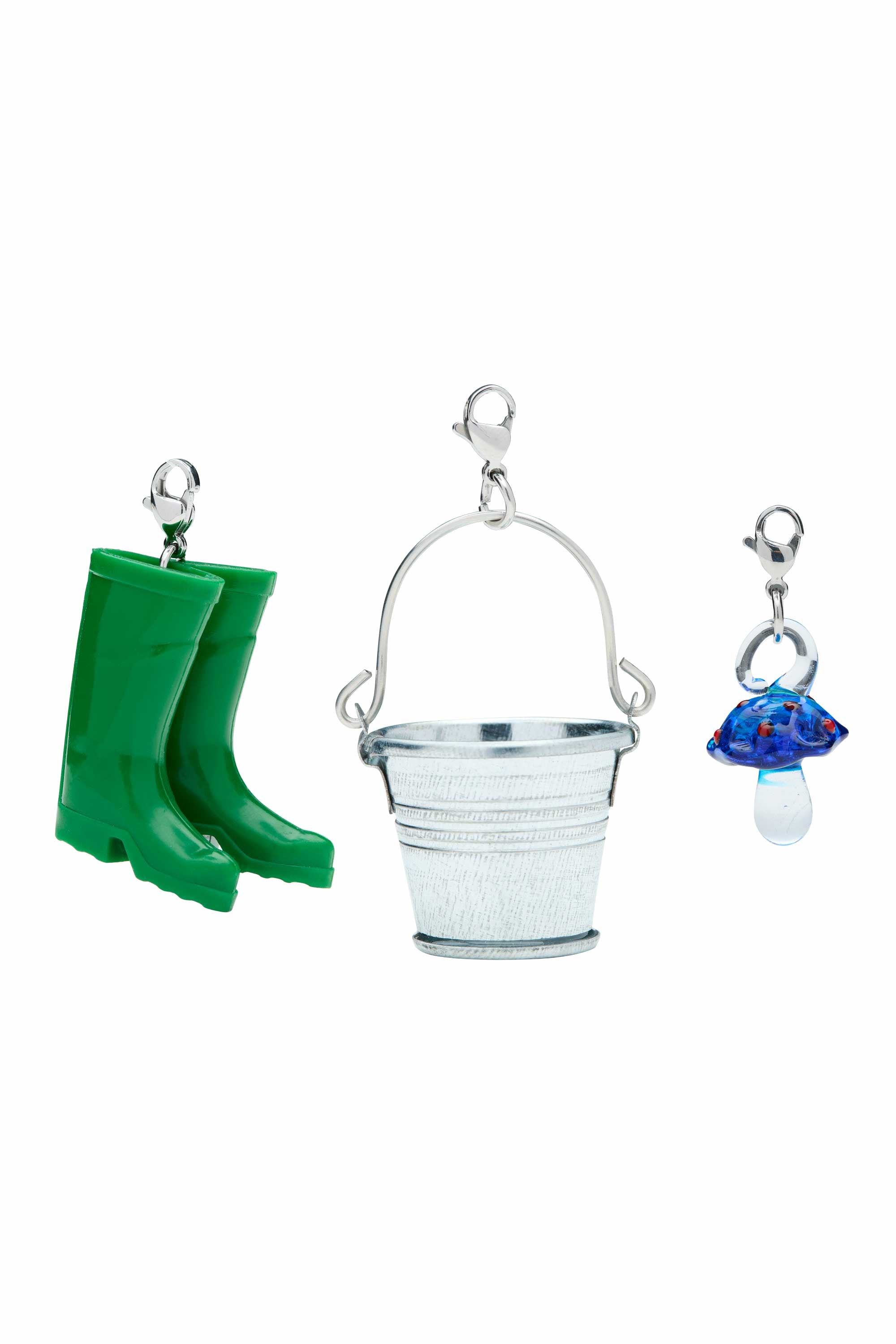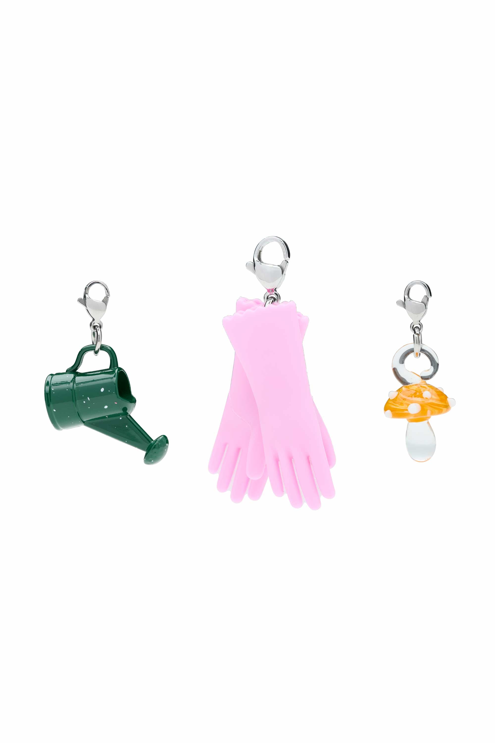 A playful set of miniature charms inspired by the colours and rituals of spring, featuring tiny buckets, rain boots, gardening gloves, watering cans and whimsical mushrooms.